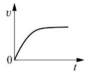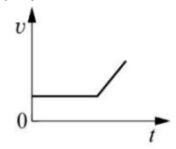 28. 有一火車正要離開車站,先以幾乎固定的加速度增加速度,後來維持等速度運動。下列速度(v)對時間(t)關係圖,何者最適合用來表示火車的運動狀態? (A)(B)(C)(D)