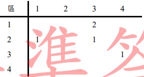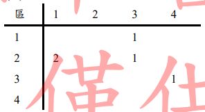 31. 有兩位民眾,甲住在1區,行程1→3→4→1,乙住在2區,行程2→1→3→2,其P-A表為 (A)(B) (C) (D)