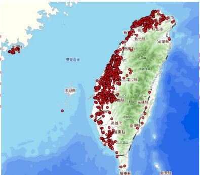 42. 下圖是臺灣某地名用字的分布圖,請問該用字最可能為下列何者?