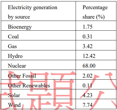 51. 下表為2024年某國能源來源比例,請問該國最可能為何?(A)丹麥 (B)冰島 (C)瑞士 (D)法國