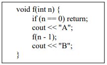 7. 執行以下程式碼f(2)的輸出為何?(A) AABB (B) ABB (C) ABAB (D) AAB