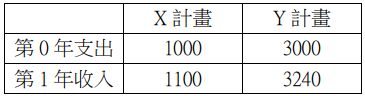7. X、Y皆為二年期之公共計畫,市場利率6%,其成本及利益如下:下列敘述何者正確?(A)根據內部報酬率,應選擇X計畫(B)根據淨現值,應選擇X計畫(C)根據益本比,應選擇Y計畫(D)為使社會利益最大,應選擇X計畫