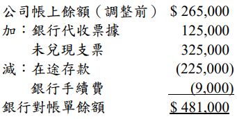 經比對銀行對帳單記錄與公司帳載數,甲公司發現8月22日支付積欠貨款所開立支票$485,800,銀行已兌付,但帳上誤記為$488,500。8月份銀行手續費$15,000,及8月份銀行代收訖之票據$40,000,公司均尚未入帳。此外,7月31日之未兌現支票有$100,000於8月底仍未兌現。