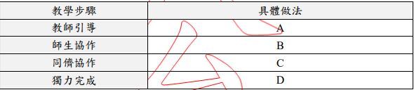 5.試從文本中找出王老師建立鷹架到撤除鷹架歷程中的具體做法(在答案卷中標註 A、B、 C、D,並分別寫出答案)。