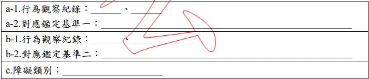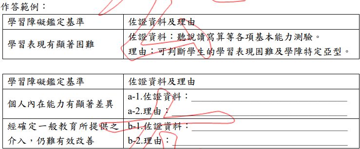 1.小吉是國中七年級新生,經普通班導師觀察,其在識字及寫字方面有顯著困難,因此將他轉介到特教組,特教教師著手進行鑑定前的資料蒐集。依據現行特殊教育法規,對應下表所列學習障礙鑑定基準,分別提出佐證資料並簡述理由。