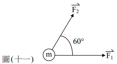 20. 圖(十一)中的機械系統力學反應,兩力 =20 N和 = 15N作用於質量為5 kg的物體, 則合力的加速度值為何? (A) 6.08m/s2(B) 9.98m/s2 (C) 2.11m/s2 (D) 4.78m/s2
