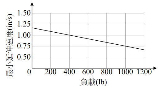 50. 利用一電機式線性傳動器來舉起一鑄件重為 800 lb,垂直上升 8 in。其資料如圖 ( 十七 ) 所示,完成此動作需耗時多久? (A) 6.7 s (B) 8.0 s (C) 9.4 s (D) 11.4 s