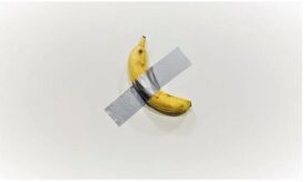 8. 右圖為哪位藝術家作品?(A) 達明‧ 赫斯特(Damien Hirst) (B) 翠西·艾敏(Dame Tracey Emin)(C) 毛里吉奧·卡特蘭(Maurizio Cattelan) (D) 傑夫‧ 昆斯(Jeff Koons)
