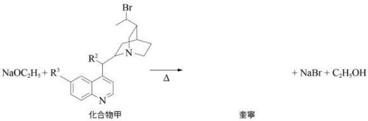 其中由文獻中得知 R2為 OH、R3 為 OCH3,請依化合物甲的結構畫出奎寧結構。(2%)