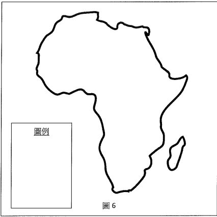 (二)作圖題1.赤道橫貫非洲大陸中央,形成熱帶氣候占全洲面積高達95%的特徵,加上地形差異、副熱帶高壓籠罩、盛行風向、沿海涼流經過等因素,氣候型態展現了全球罕見的南北對稱之分布。圖6為非洲簡圖,請繪出各種氣候類型的分布、圖例,以及赤道、本初子午線,並於圖中標註非洲大陸上流入印度洋的最大河流。