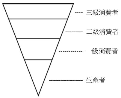 22.生態金字塔(ecologicalpyramid)由許多描繪特定營養級別的水平條狀組成,每個條狀的寬度代表生態系統中每個營養級(trophicIevel)的個體總數(thetotalnumberofindividuals)或生物量(biomass)或能量,而最底部是生產者(producer)。下圖是一個倒立的生態金字塔,請問這個金字塔最有可能屬於哪一種生態系統、且其是個體總數、生物量、或是能量的金字塔。