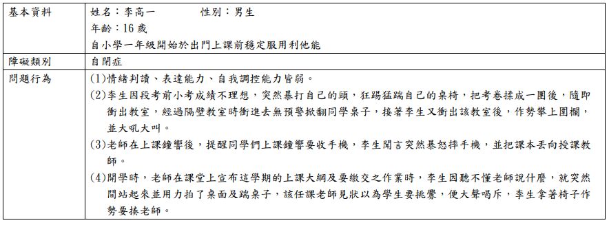 3. 以下為本校高一身心障礙學生個案之說明:入學後開始跟與任課老師衝突不斷,有情緒時會攀上走廊花圃、作勢打老師, 造成導師、任課教師班級經營甚大困擾。因應個案之狀況需召開個案會議,請就個案問題行為,說明著手處理的方向、給 教師的建議,並為個案擬定 IEP 中之行為功能介入方案。(30%)