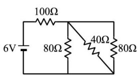 8. 如下圖所示的電路中,設電池的內電阻為零,則流經 40 Ω 電阻的電流量為 ______A。