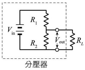 14. 設計一個分壓器,如圖為以兩串聯電阻R1、R2和一電壓源Vin組成分壓器的電路,其中R1 = 75 Ω 及Vin = 100 V,若負載RL的電壓Vout為 25 V,且流經 RL的電流為 900 mA,則R2的電阻值為多少 Ω?。