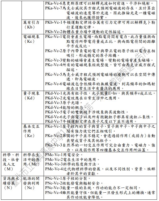 3. 請針對高一物理的課程中,挑選某個主題,設計一個兩周(共2小時)的素養導向教學課程,設計內容須包含:(共 15 分)(1)對應課綱的學習內容與學習表現(請參考後面附表)(2)學習目標(3)教學流程與時數配當(4)檢核點(5)針對其中一個學習表現的檢核點寫下評量規準。