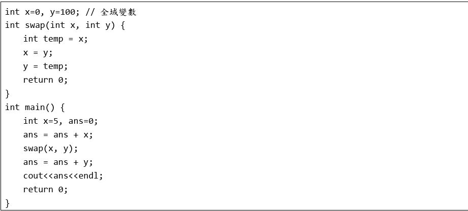 20. 若 a=1, b=2, 使用 f(&a, b);呼叫下列函數後,a= _____?