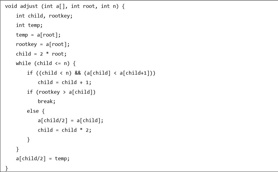 for (i=n/2; i>0; i=i-1) adjust(a, i, n);