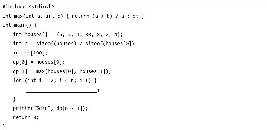23. 大綠基金會準備發放教育補助金給一條街上的學生家庭,為了避免鄰里之間的爭議,不能將補助金發給相鄰的兩戶人家。請問最高可以發放的補助金總額為多少?請完成空格處程式碼。