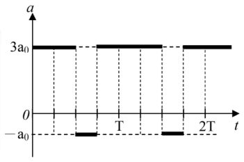 4. 有一質量為 m 的玩具小船由靜止開始在相鄰兩個運動週期內的加速度 a 與時間 t 之關係如圖所示,其運動可視為直線運動,則在經過第一個週期(t=0~t=T)後,小船的動能增加量為何? 【4】