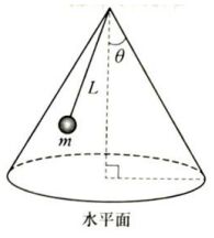 9. 一個光滑的圓錐體,其中心軸線是垂直的,放在水平面上。圓錐中心軸與側面所成的角爲 θ,如圖所示,將長度為 L 且不可伸縮的輕繩的一端安裝在圓錐頂點,在另一端安裝質量爲 m 的小球。使其作等速圓周運動,求小球恰不離開圓錐體側面的最大速度量值為何?(設重力加速度大小爲 g) 【9】
