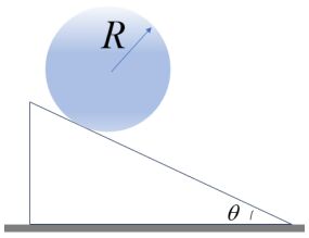 13. 如圖所示,有一半徑為 R ,質量 m 的均勻實心圓盤,放置於水平夾角θ的固定斜坡上。當圓盤作純滾動時,則圓盤中心處的加速度量值為 【13】 。