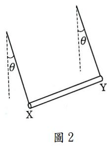 15. 如圖 1 所示,質量 m、長度 L 的導體棒 XY 的兩端垂直連接不可伸縮的導線,吊在空中,使導體棒 XY 保持水平移動。在導體棒中,有從 X 向 Y 流過大小爲 I1的電流。在鉛直方向上施加均勻磁場,使該磁場穩定地增強到大小爲 B 時,導體棒會如圖 2 所示,與鉛垂方向夾 θ 角而靜止,設重力加速度大小爲 g、真空磁導率爲μ0。當導體棒 XY 達到的力的平衡時,該穩定磁場 B 的大小爲何? 【15】 (以 m、L、θ、I1以及 g 來表示)