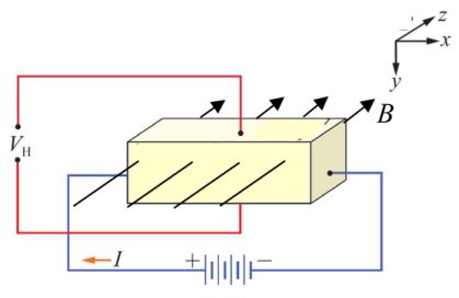 二、 計算及問答題(依每題配分,共 34 分) 1. 當電流通過一個位於磁場中的導體時,磁場會對導體中的電子產生一個垂直於電子運動方向的作用力,進而在導體的兩端產生電壓 VH。下圖的方塊為一個導體,若沿+x 軸方向通入電流,沿+z 軸方向給定一個固定的磁場 B,若持續通入電流 I,導體的上下兩端(±y軸方向)會累積電荷,導致所測得的 VH,是否會愈來愈高?你的理由為何? (5 分)