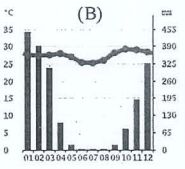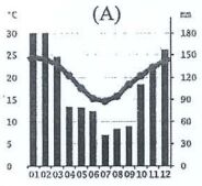 20. 臺灣的降水呈季節分布不均,若遇乾旱,易造成農業、工業、民生用水分配的緊張關係。新竹地區工業用水需求甚大,近20年來,遇到乾旱,多次進行農業休耕,以優先分配工業水和民生用水。下列哪一段時節是新竹最容易發生農業休耕的月份? (A)3-4月 (B)6-7月 (C)9-10月 (D) 12-1月