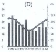 37. 澳洲之主辦都市的氣候圖,最可能是下列何者?(注意:各圖之氣溫和雨量的刻度略有差異) (A) (B)(C)(D)