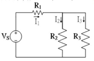 44. 如下圖所示,若Vs=12V,I1=2A,R2=3Ω,R3=6Ω,求電阻R1的大小為何 ?