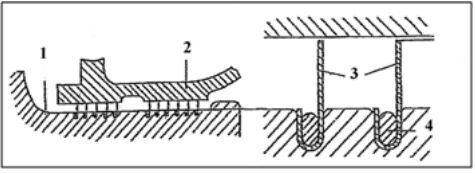 29. 下圖乃廢氣渦輪增壓機的氣封裝置,按結構區別為那一種形式 ? (A)接觸式密封裝置 (B)活塞環式密封裝置 (C)迷宮形徑向密封裝置 (D)迷宮形軸向密封裝置