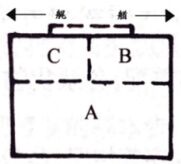 4. 圖中的雜貨配載圖,B種貨物裝在何處? (A) 底艙上層前半艙 (B) 底艙上層右半艙 (C) 二層艙後半艙 (D) 二層艙右半艙