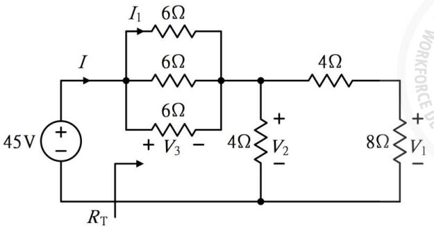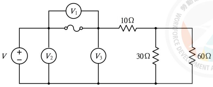 (A)I=9A (B)V1=20V (C)V2=27V (D)V3=18V 。