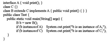 (A)沒有任何輸出 (B)b is aninstance of A, (C)b is an instance of C, (D)b is an instance of A,b is aninstance of C, 。