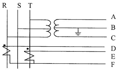 6. 如圖示高壓電表組之接線,若 D 線頭接於電表 1S 端子,則電表 P1 端子應接於何線?