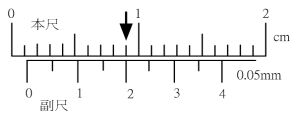 46. 如下圖示為游標卡尺量測後之顯示,箭頭標示本尺與副尺吻合線,請問由此可知量測之尺寸為何?