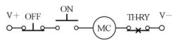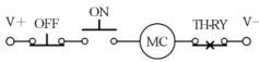 (A)只壓下 ON 鈕時電磁接觸器會作動 (B)壓下 OFF 鈕時電磁接觸器會停止作動或無法啟動 (C)同時壓下 ON 鈕與 OFF 鈕時電磁接觸器會作動 (D)此電路屬於重置優先電路 。