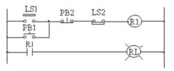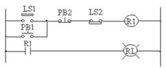 (A)LS1 或 PB1 皆可啟動紅燈 RL (B)此電路具有自保持功能 (C)LS2 或 PB2 皆可解除紅燈 RL (D)此電路屬於重置(Reset)優先電路 。