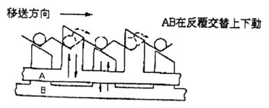 (A)日內瓦機構 (B)行走樑 (C)平版凸輪 (D)震動送料器 。