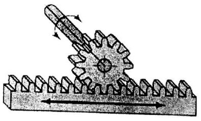 (A)直齒斜齒輪 (B)蝸線斜齒輪 (C)蝸桿與蝸輪 (D)齒條與小齒輪 。