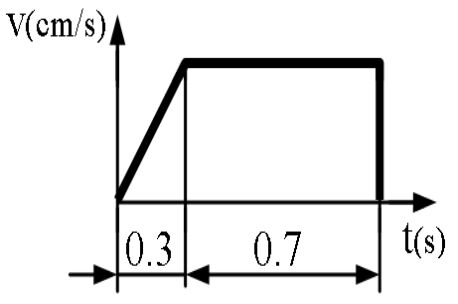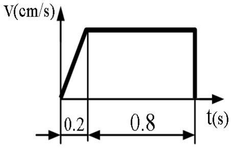 。若以 20%與 80%的移動時間做等加速度與等速度(如下圖所示),則等加速度為多少 cm/sec