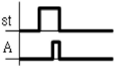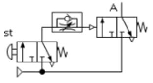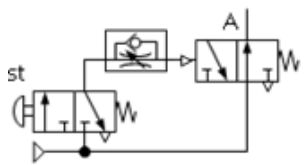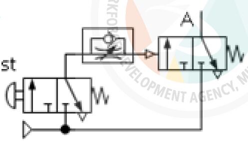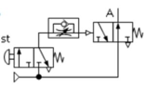 下列各氣壓迴路圖,何者可得左圖之訊號(A)