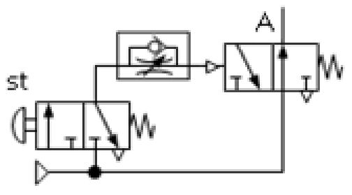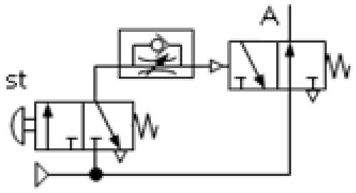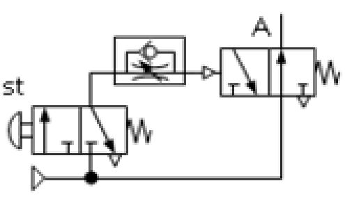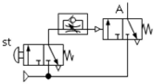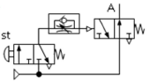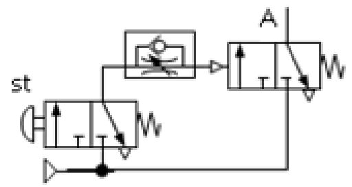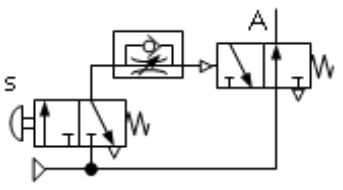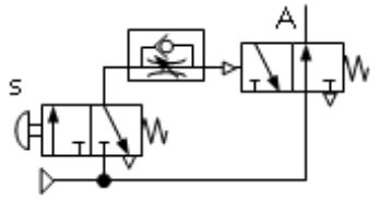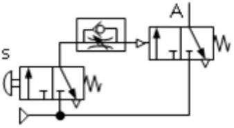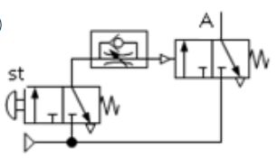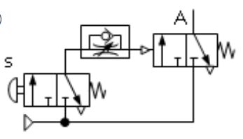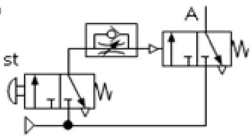 下列各氣壓迴路圖,何者可得左圖之訊號 (A)