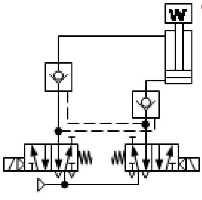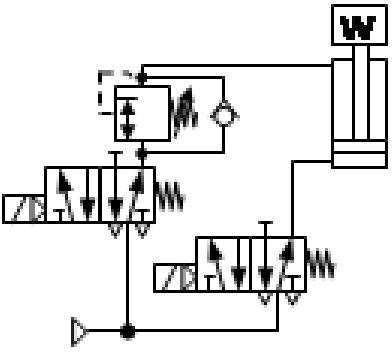 134. 下列各氣壓迴路圖,何者可得與下圖相同功能之迴路