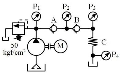 150. 如下圖所示,管路阻力忽略不計,在溢流閥設定壓力 50 kgf/cm