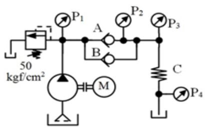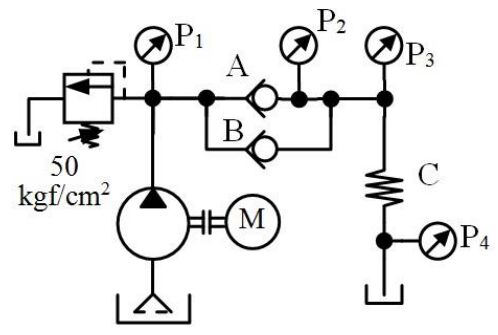 、額定流量 20 l/min 時,止回閥 A、B 開啟壓力分別為 3、2 kgf/cm