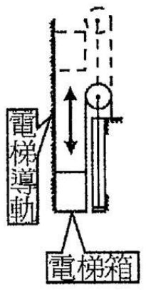 174. 如下圖為一台以油壓缸(φ150×100×5000)透過鋼索驅動之電梯(W=5000kgf),若電梯箱上升移動速度為 6 m/min,下列敘述正確?