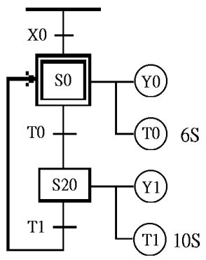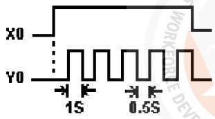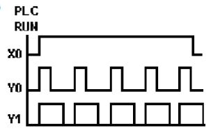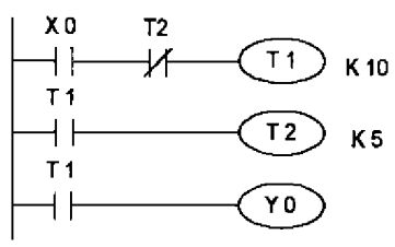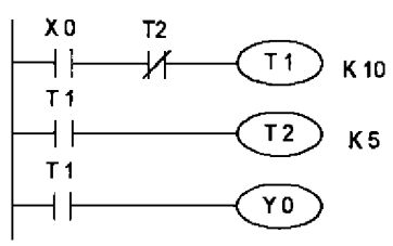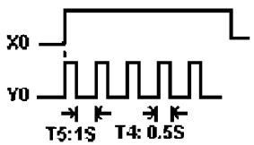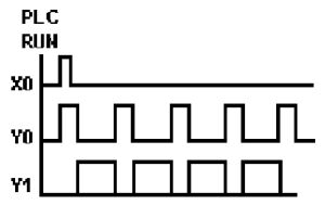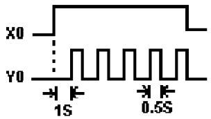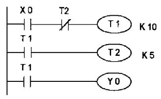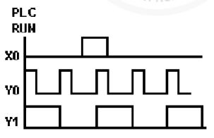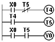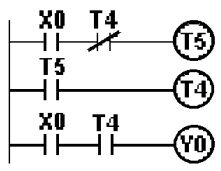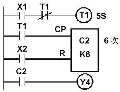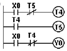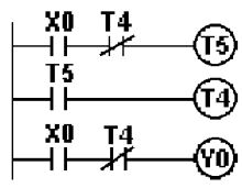 (A)Y4 無法輸出 (B)Y4 輸出一個掃描時間 (C)Y4 保持 ON 狀態 (D)Y4 動作後 5 秒 OFF 。