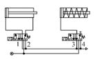 3. 下圖為一個二連座之電磁閥組控制一支單動氣壓缸及一支雙動氣壓缸,應在何處排氣口加入一個止回閥以防止單動缸誤動作?