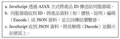 71. 透過 AJAX 方式交換 JSON 資料,使用者在網頁中點選線上產品縮圖時,用以連結產品資料,系統執行下列動作順序為何?